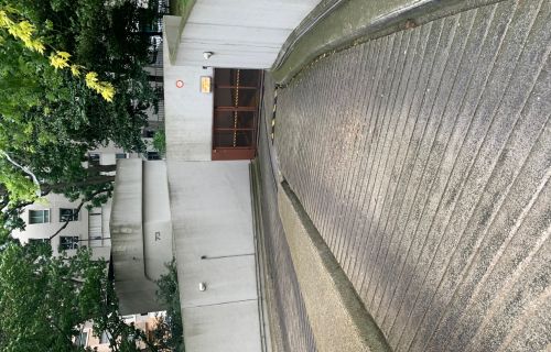 Large rampe d’accès et place large peut contenir facilement un 4x4, parking espacé aucune difficulté pour se garer.