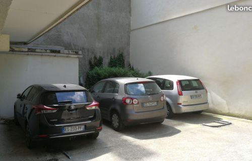 Une place de parking en extérieur (niveau 0), accessible par badge depuis la rue. L'accès et les manoeuvres sont particulièrement faciles. Sur la photo : place du milieu, à l'emplacement où est stationnée une Golf Plus grise.