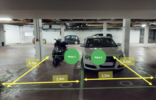 Je loue 3 places de sationnement au premier niveau de sous-sol du parking sécurisé de la Tour d'Asnières (gardien, contrôle d'accès par badge, barrière et portail). Voies de circulation larges et manoeuvrables.