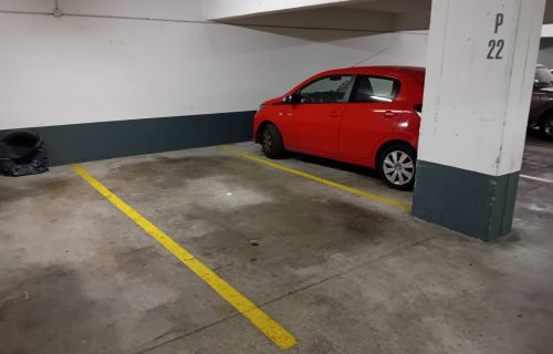 La place mesure 2m20 par 5m30 et le parking fait 2m15 de haut au plus bas.