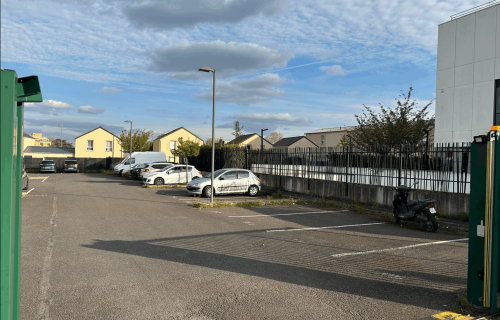 Parking fermé à ciel ouvert avec portail électrique.